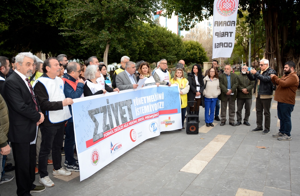 İnönü Parkında bir araya gelen Adana Tabip Odası, Sağlık ve Sosyal Hizmet Emekçileri Sendikası Adana Şubesi, Genel Sağlık-İş Adana Şubesi, Birlik ve Dayanışma Sendikası ile Aile Hekimliği Çalışanları Sendikası yönetici ve üyeleri; güçlü birinci basamak sağlık hizmetleri taleplerini dile getirerek, Sağlık Politikalarının toplum yararı gözetilerek yeniden düzenlenmesi gerektiği çağrısında bulundular.